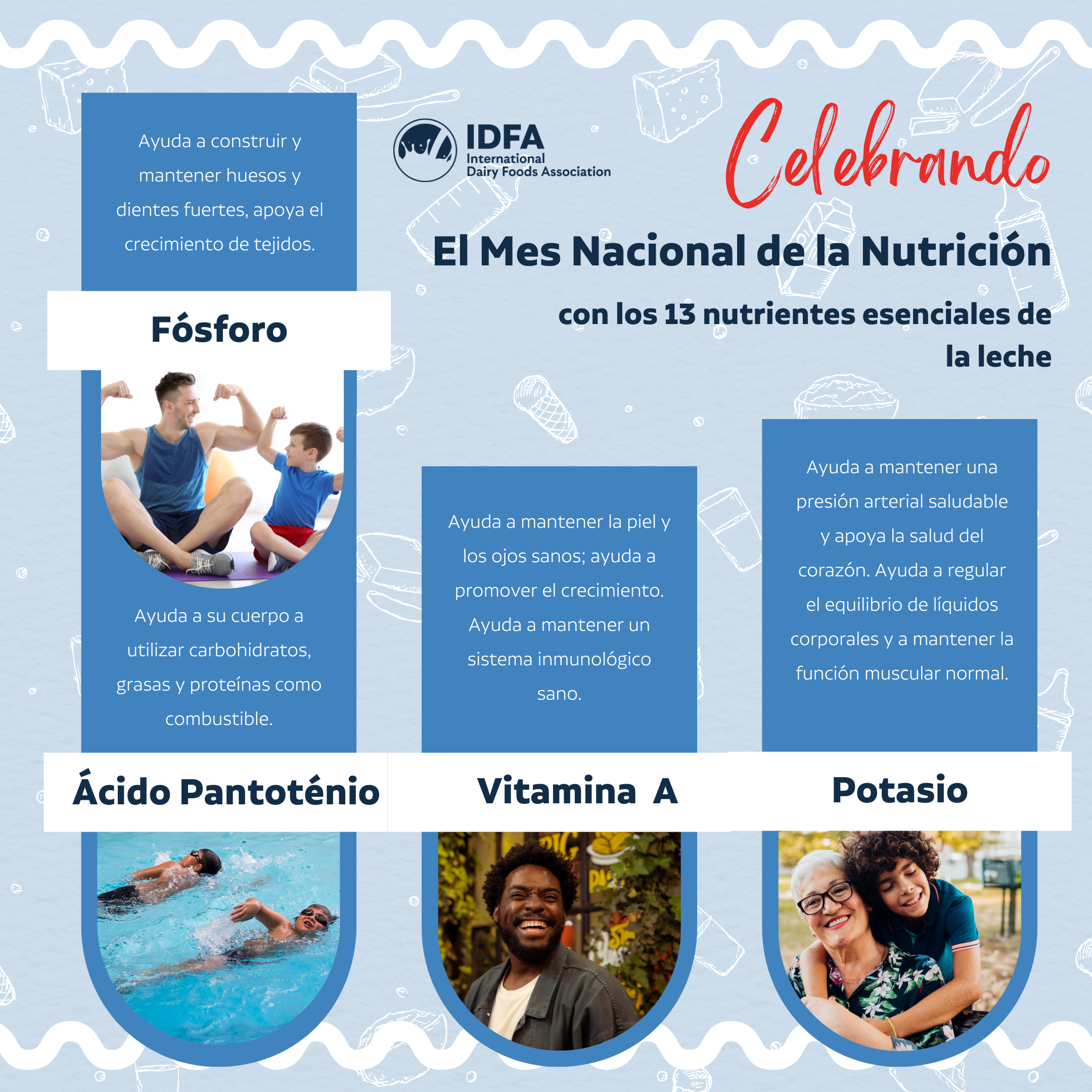 Milk provides a unique combination of nutrients to American diets. Milk contains thirteen essential nutrients, including three of the four nutrients identified as dietary components of public health concern in the 2020-2025 Dietary Guidelines for Americans (DGA)—calcium, vitamin D and potassium. Milk provides 22% of the calcium, 40% of the vitamin D and 10% of the potassium in the American diet. In addition to these nutrients, milk is also a good source of protein, vitamin A and B vitamins, combining into a nutrient package not found in other foods or beverages. Read more about the nutritional benefits of milk here, and share information about milk's 13 essential nutrients using the graphics below.